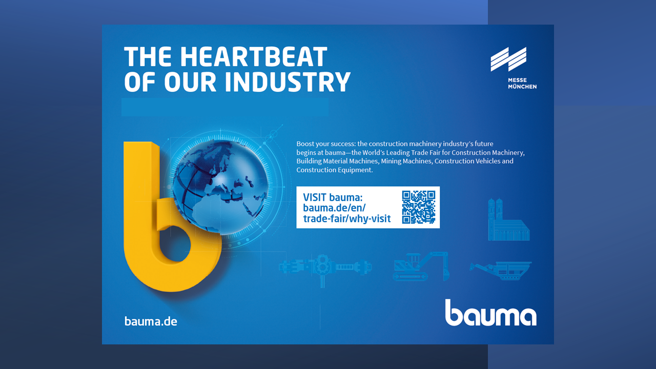 Η bauma, που διοργανώνεται κάθε τρία χρόνια στο Μόναχο από τη Messe München, αποτελεί τη μεγαλύτερη και πλέον καταξιωμένη διεθνή έκθεση στον κόσμο για κατασκευαστικό και εξορυκτικό εξοπλισμό, δομικά υλικά, μηχανήματα, τεχνολογίες και υπηρεσίες. Με παγκόσμια ακτινοβολία και ηγετικό ρόλο στον κλάδο, η bauma είναι το απόλυτο σημείο συνάντησης της διεθνούς κατασκευαστικής και τεχνικής κοινότητας.